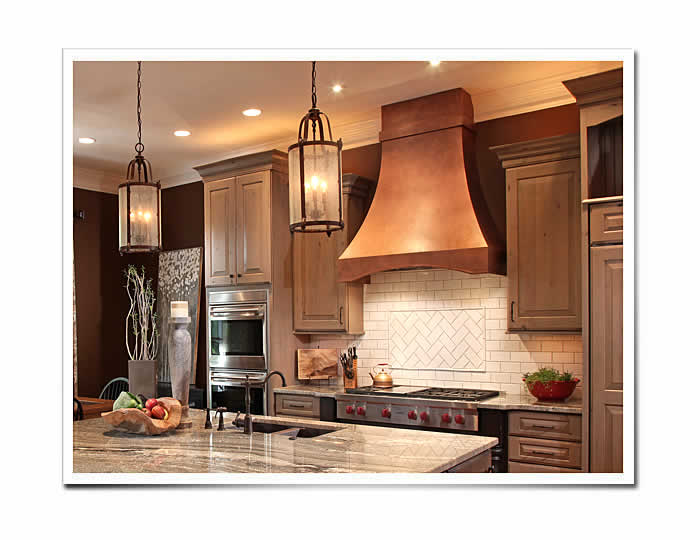 The Arched Sweep family of range hoods brings a classic architectural form to our collection. It can be designed with a solid band going across the bottom, a simple arch cut out on the apron or any combination of curves and banding materials to enhance the arch detail. This custom kitchen vent hood works well in many styles of homes and also in accentuates interior details such as arched cabinets and doorways. Like all of our custom kitchen ventilation, the Arched Sweep is designed to your specifications and available in any metal.