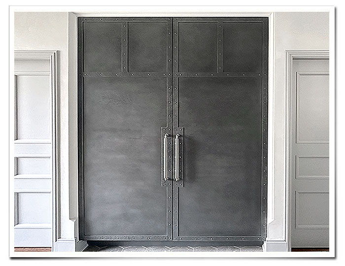These behemoths are a site to behold! Engineered and crafted by hand out of zinc in our Indiana studio for a Sub-Zero™ column refrigerator/freezer set.