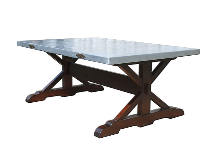 Custom dining room table with a solid mahogany frame and zinc countertop. This table was heavy and will be passed down for generations.